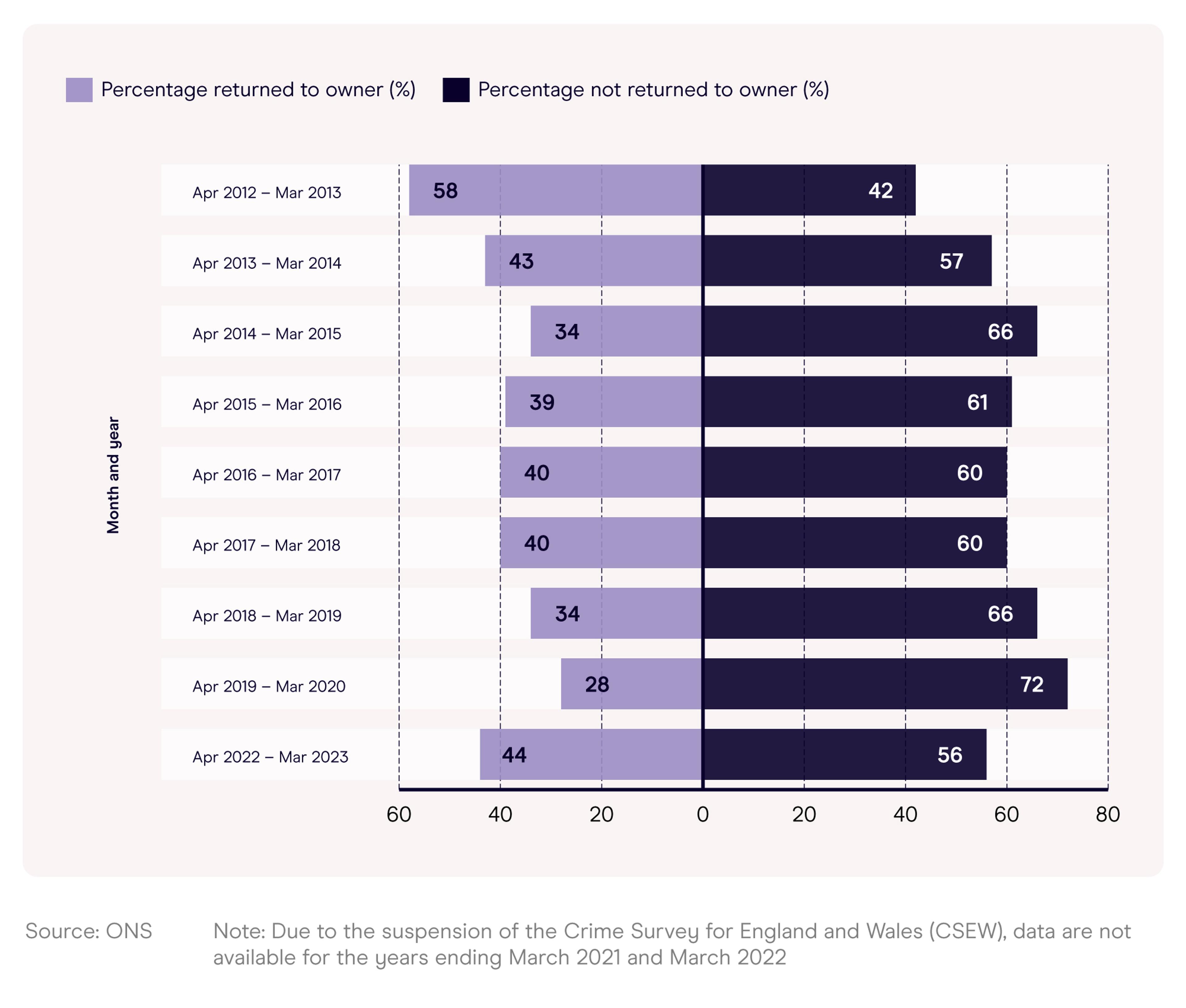 Note (1): Due to the suspension of the Crime Survey for England and Wales (CSEW), data are not available for the years ending March 2021 and March 2022.