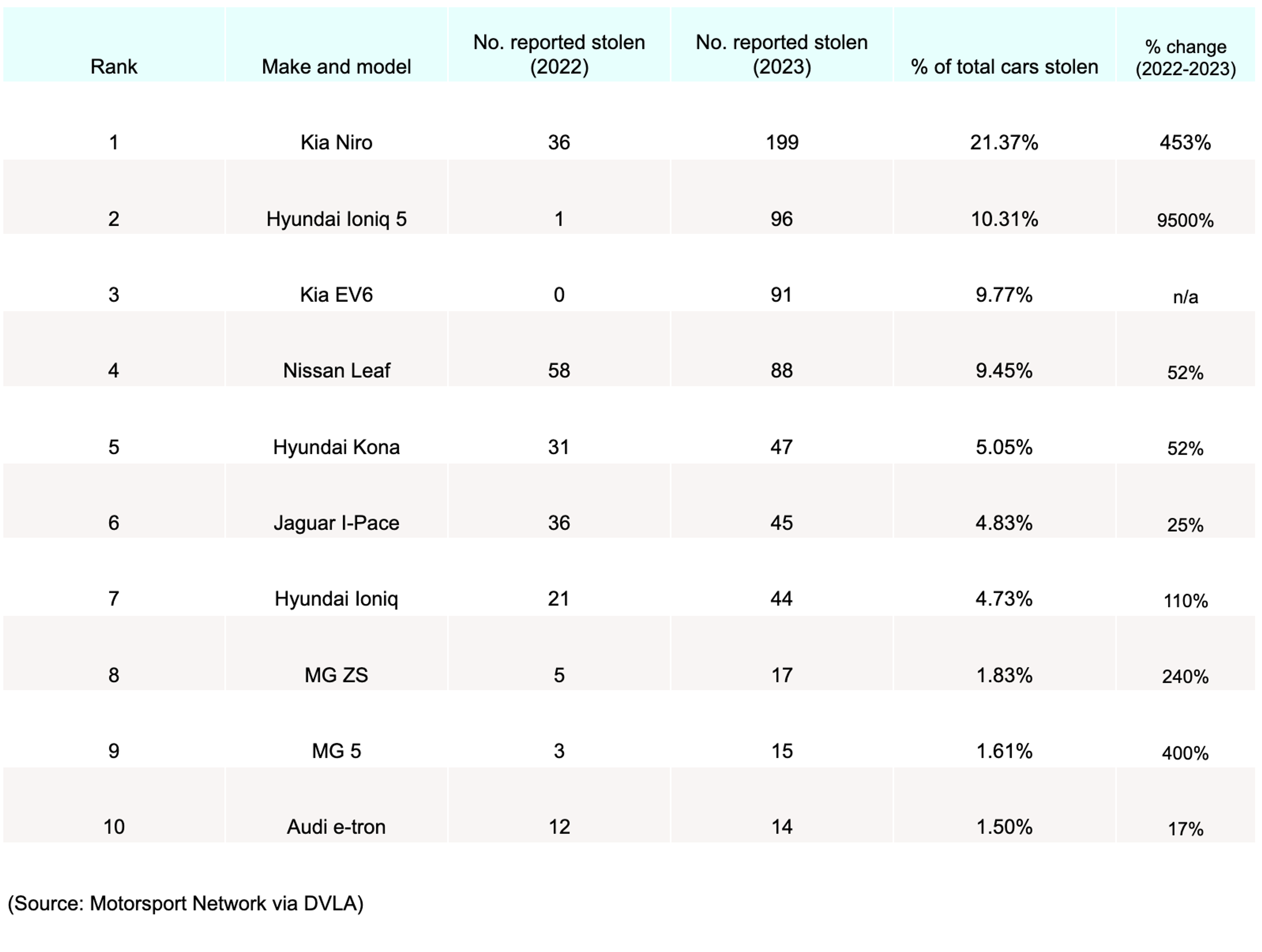 ^Most stolen electric cars in the UK (2023)