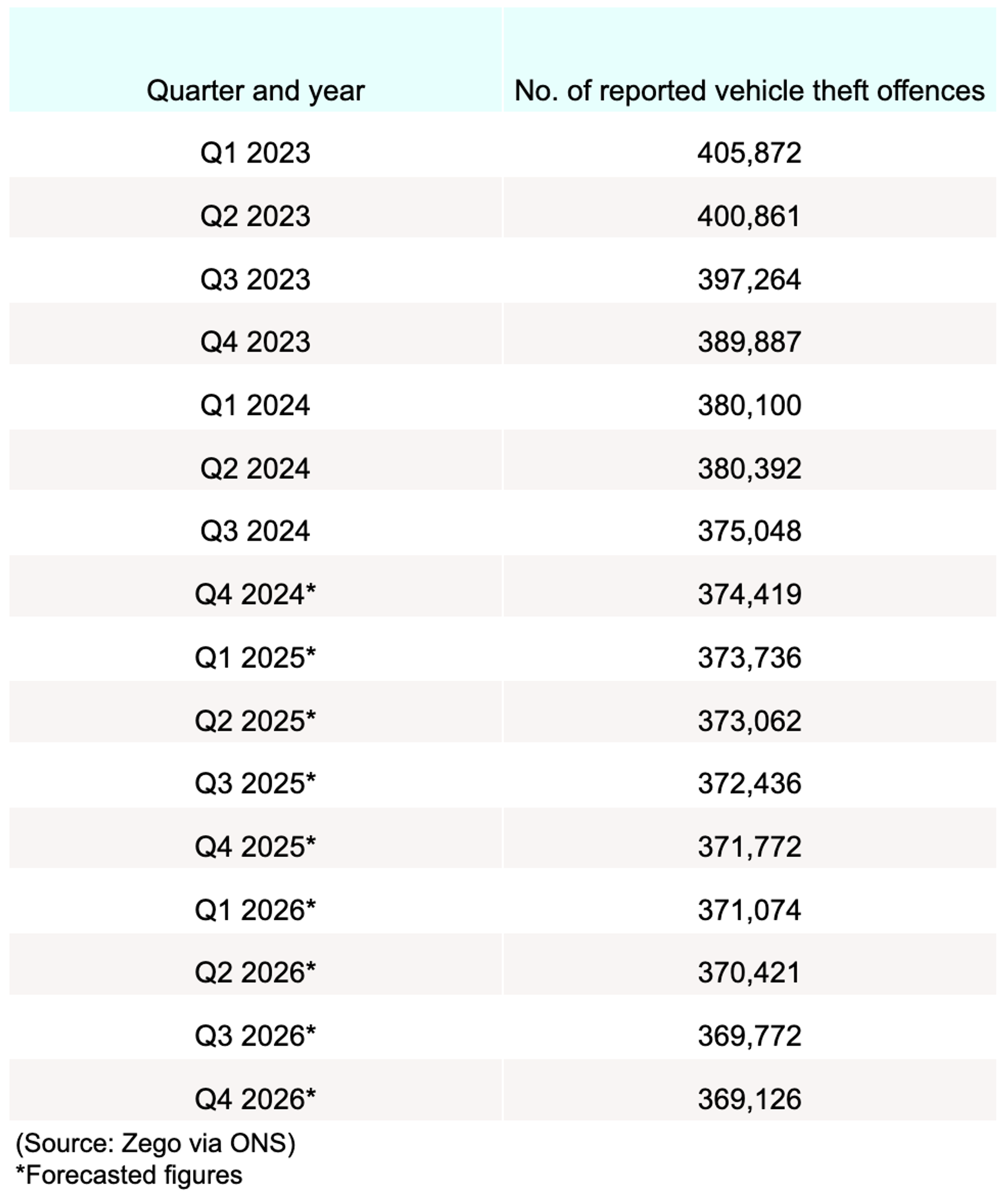 Reported car thefts are predicted to drop by around 2% between 2024-26.04
